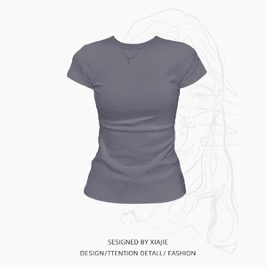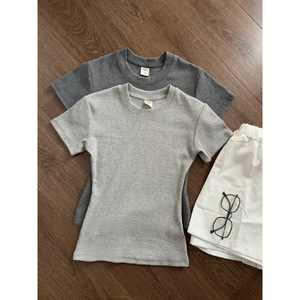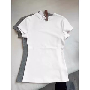 小さなラウンドネック、スリムフィット、ショルダー半袖