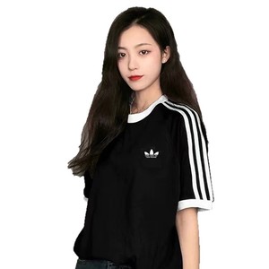 韓国版ジェニーと同じクローバー刺繍文字トレンディな純綿半袖Tシャツ夏のレディースプルオーバールーズ