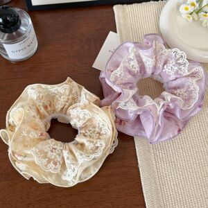 優しい紫色のレースのヘアゴム韓国イン甘い文学ボールヘアロープ外出多用途ヘッドフラワー女性用