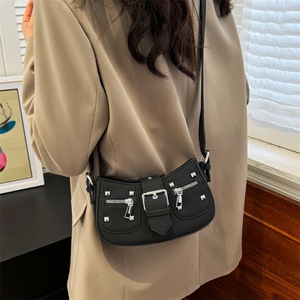 ニッチでトレンディーでクールなヨーロッパとアメリカンスタイルのホットガール脇の下バッグ、女性用夏スタイルリベット要素ハイエンドシングルショルダークロスボディバッグ