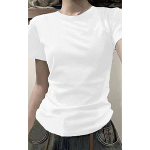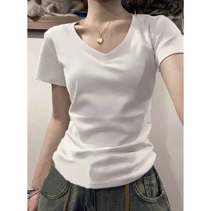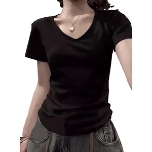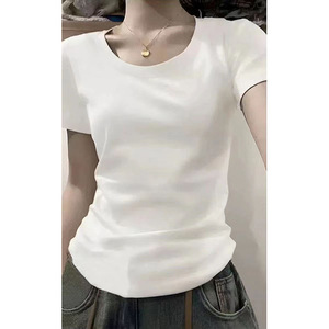 ピュアコットンアメリカンUネックショルダー半袖Tシャツレディース2025夏新作ベーシックインナーレイヤリングカレッジスタイルトップ