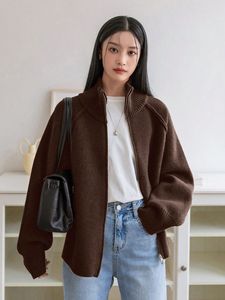 クロスボーダーレイジースタイルセータージャケット女性のための 2025 秋と冬の新しい韓国スタイルソリッドカラースタンドカラージッパーニットカーディガントップ