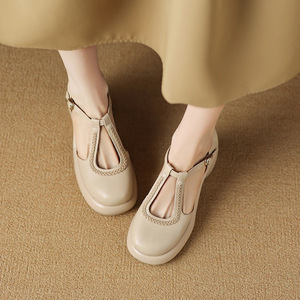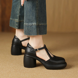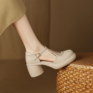 ニッチライトラグジュアリー 2025 夏手作り婦人靴レトロ婦人靴サンダルハイヒールラウンドトゥ太いヒールサンダル