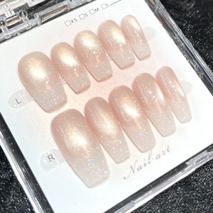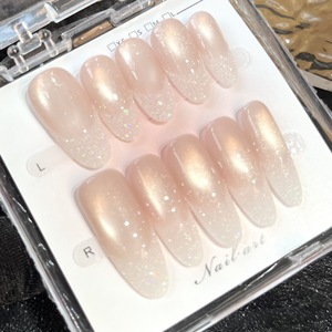 Beauty Tears 手作り光療法ウェアラブルネイルアーモンドホワイトニングキャットアイライト高級人気ヌードカラーフレンチウェアラブルネイルアートステッカー