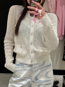 ハーフカーディガンスリムニット半袖カーディガン2025新作Nanyou高精細小香風ダブルCラウンドネックトップ中空