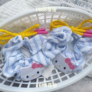 韓国ファッションかわいいキティ猫ヘアバンド甘い女の子ブルーストライプヘアロープポニーテールヘアゴムバンド