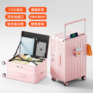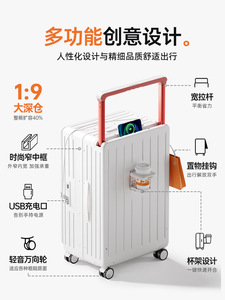 20inch搭乗可能【省力ワイドプルロッド+二層防爆ジッパー+特大ウォーターカップホルダー+デュアル充電インターフェース】