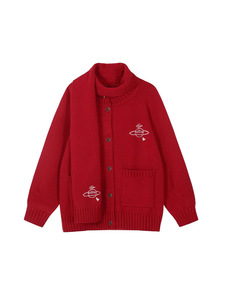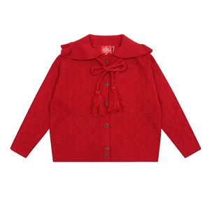 25SS Weiwei 春の新作土星刺繍セーターフリル襟韓国版痩身ニットセーター集