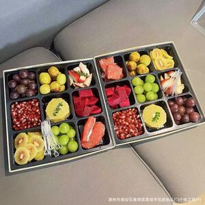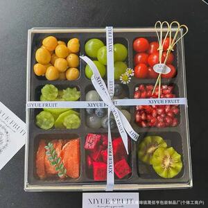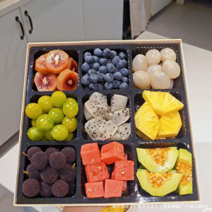 インターネット有名人 Jiugongge フルーツカット包装箱紙プラスチック大きな正方形の果物と野菜の生の果物 4 分割包装箱商業用