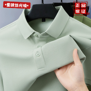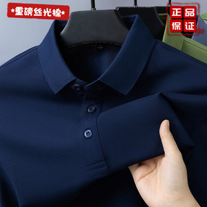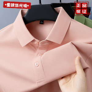 夏の新スタイルアイスシルクラペルヘビーピケシルケットコットンポロシャツビジネスカジュアル無地半袖メンズファーザー服