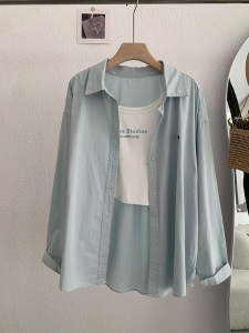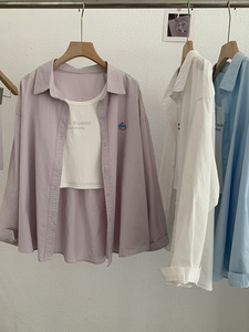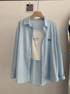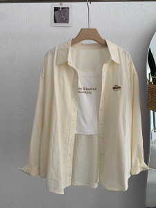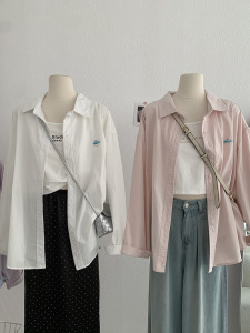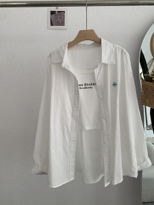 Omalai スモールレターリボンラペル長袖ミドル丈シャツ+レターベスト2点セット 女性用 3629