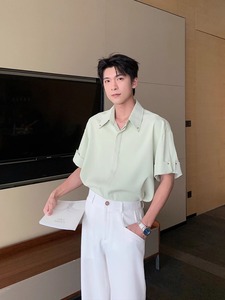 夏クール半袖シャツメンズ 2025 新しい韓国スタイルルーズハンサムシャツノンアイロンテクスチャートップ