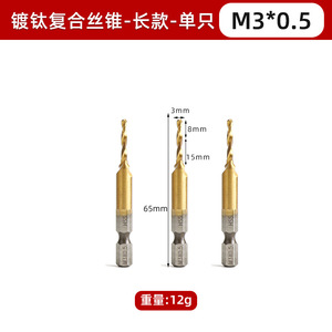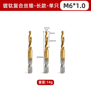 钻攻一体三合一复合丝锥丝攻 镀钛复合丝锥组套6pc公英制机用开孔
