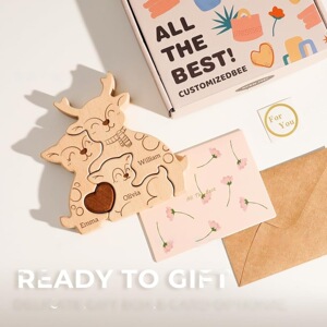 木製ヘラジカ暖かい家族パズル装飾品家の装飾装飾品無垢材彫刻工芸品