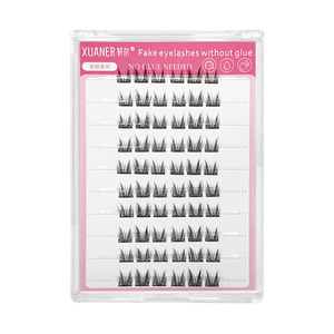Xuaner 接着剤不使用のつけまつげ、大容量、スマート、ナチュラル、ワイルドキャットのまつげ、セグメント化されたまつげ、フラットマツエク