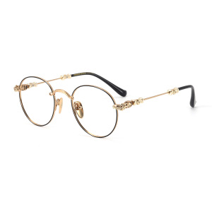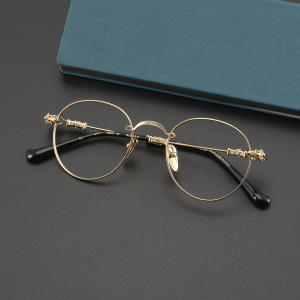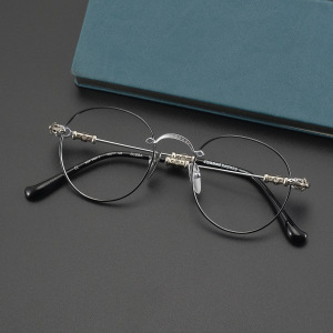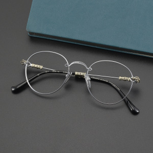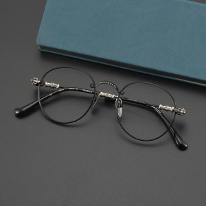 日本の新しい超軽量純チタン近視メガネフレームメンズ抗ブルーライトレトロラウンドフレームクロウスター光学アイフレーム