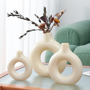 マルチカラーオプション北欧模造セラミック花瓶装飾品クリエイティブドーナツリビングルームフラワーアレンジメント家の装飾ドライフラワーディスペンサー
