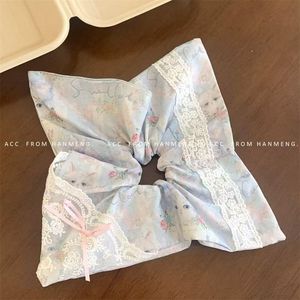 手作り花柄リボンガールハートクマスクエアスカーフ韓国風ロマンチックレトロかわいい甘いヘアアクセサリー