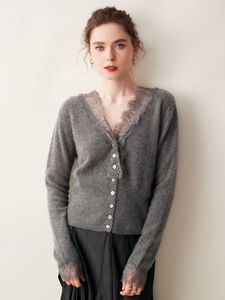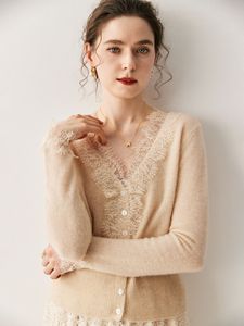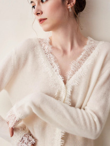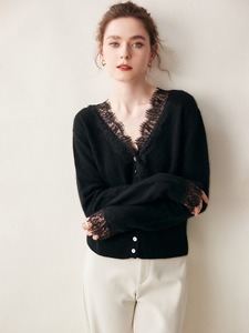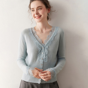 レースカシミヤカーディガン女性の V ネックショートセータージャケットニットウールカーディガン長袖秋と冬の新しいスタイル