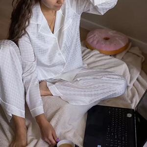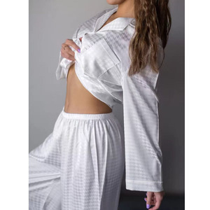 2025年新色サテンファッションパジャマ レディース春秋シャツ 千鳥格子柄ルームウェア 長袖
