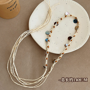 ブルーコーヒーシェルビーズ編みウエストロープ - 約141cm、ビーズの色はランダムです