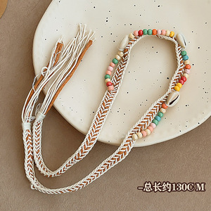 ボヘミアンエスニックスタイルウエストチェーンハイエンド2025新しいウエストロープ装飾スカート織りタッセルベルト女性用