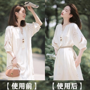 ホワイトコーヒーフラワービーズ編みウエストロープ - 約138CM、ビーズの色はランダムです。