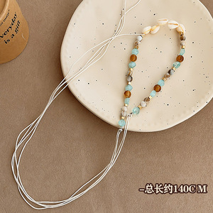 シェルウッドビーズホワイトウエストチェーン-約130CM