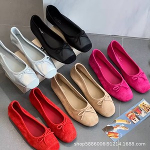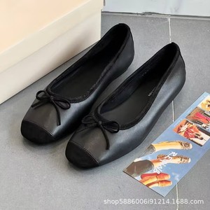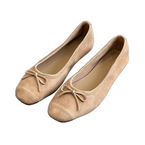 雲のような柔らかくワックス状の本革の浅い口のローファー、柔らかい表面の女性用シングルシューズ、広東省製のリボン付きフラットバレエシューズ