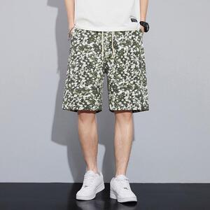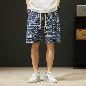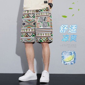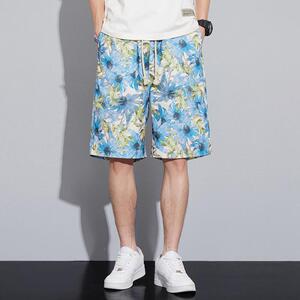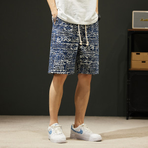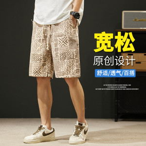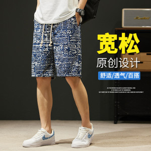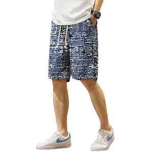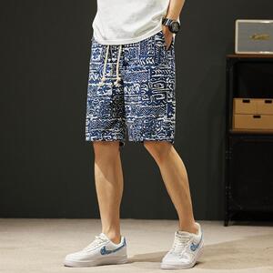 レトロエスニックスタイル油絵メンズショートパンツ夏薄手の5点パンツルーズストレートカジュアルビーチパンツ多用途