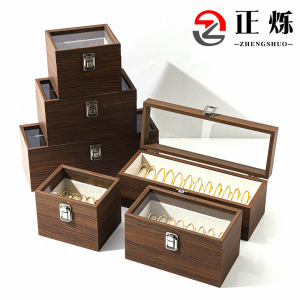 スポットブラックウォールナットカラーマルチビーズブレスレット専用収納ボックスハイエンド防塵ゴールド翡翠ブレスレットディスプレイコレクションボックス