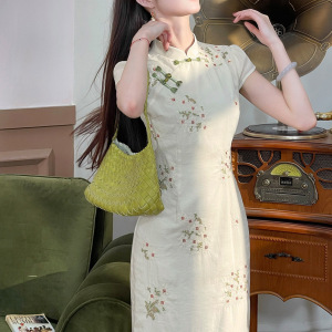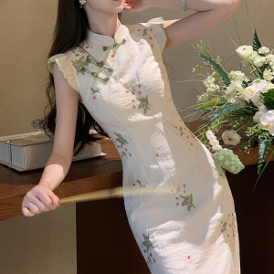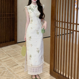 2025 [Luoyu Yao] 新しい中国風のレトロな刺繍改良されたチャイナドレスの女性の夏のレースのスプライシングドレス