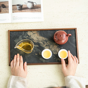 天然岩板ティートレイ、和風ドライバブルトレイ、レトロポットティートレイ、高級ティーテーブル収納、水切りカンフーティートレイ