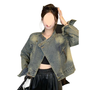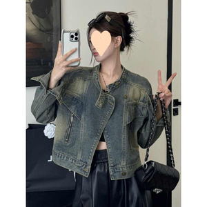 レトロな香港スタイルのスタンドカラーデニムショートジャケット女性のための初秋の新しいスタイルのルーズで多用途なカジュアルジャケットトップ
