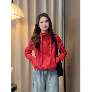2025 新しい夏のカジュアルスリムソリッドカラー多用途気質フード付きインターネットセレブホットスタイルショート長袖日焼け止めジャケット