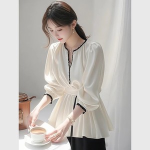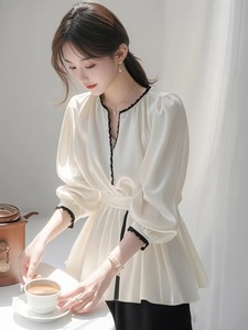 2025 春夏新作ユニークで超見栄えの良い気質トップスハイエンドの小さな香りの女性用多用途ホワイトサテンシャツ