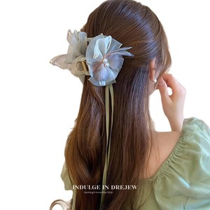 後頭部に蝶結びヘアピンを付けた女性、超妖精のリボン、新しい中国風のポニーテールクリップ、漢服のチャイナドレス、古代風の頭飾り