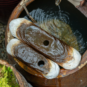 セラミック流水タンク、古代の養魚生態水槽、水槽循環ろ過と酸素化、バルコニー中庭造園装飾装飾品