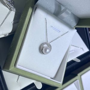 天然淡水无核8-9mm白色正圆强光珍珠吊坠项链S925钻圈款