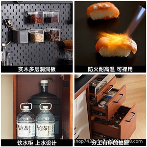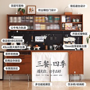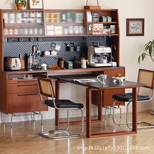 黄杨木复古风实木餐边柜餐桌一体柜北欧复古厨房靠墙储物柜收纳柜