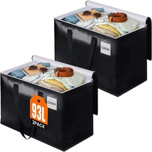 黒のジッパー織り移動バッグ、特大の省スペース収納バッグ、ハンドル付きの頑丈なツールバッグ