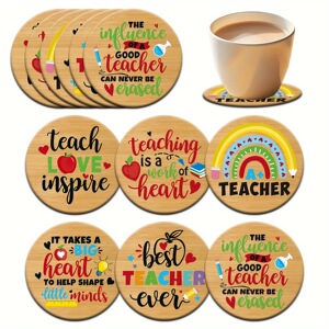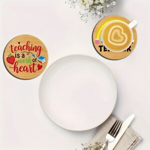 感謝祭の引用柄の丸いクリエイティブな木製コースターの6点セット、教師の日と感謝祭のホリデーギフト