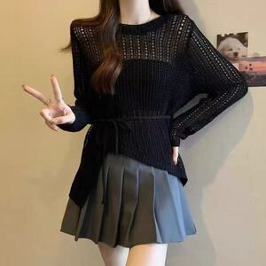 中空アウターブラウス、夏用薄手日焼け止め、不規則かぎ針編み中空セーター、ゆったりエアコンウエスト、ラウンドネック