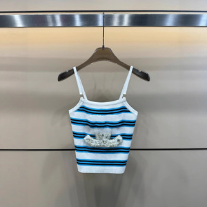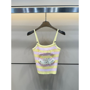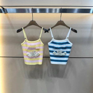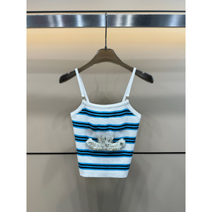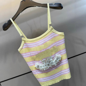 25夏新作フレグランスロゴストライプ配色立体フラワーニットノースリーブプルオーバーサスペンダースリムベスト