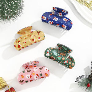 跨境圣诞节新款抓夹衣架形PVC圣诞老人圣诞树雪人发夹发饰鲨鱼夹