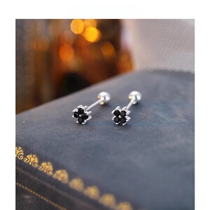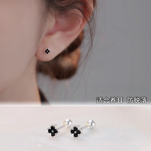 925 シルバー針黒小花イヤリング女性のためのコンパクト耳ピアスイヤリング気質イヤリングシンプルでエレガントなイヤリング