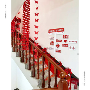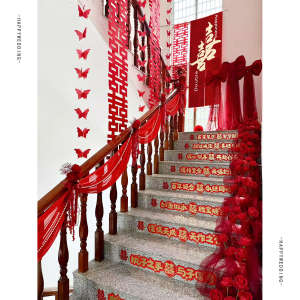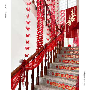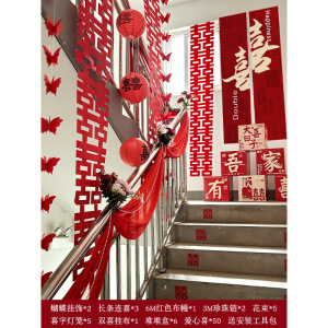 结婚楼梯扶手装饰墙面婚房布置套装女方室内婚礼用品大全婚庆拉花