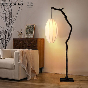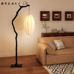 新中式落地灯禅意复古茶室客厅氛围灯诧寂风树枝布艺灯笼钓鱼地灯