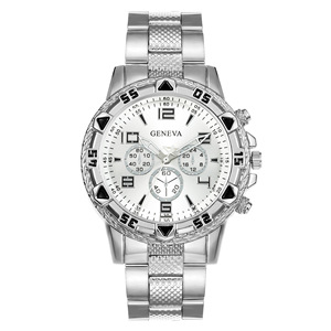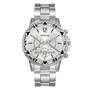 シルバーホワイト三つ目時計+アクセサリー4点セット(箱除く)