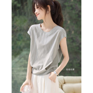カジュアルでシックなデザインのウエスト痩身シャツ 2025 夏の新しいスタイルの女性のための背中スリットシャツ年齢を減らして痩身